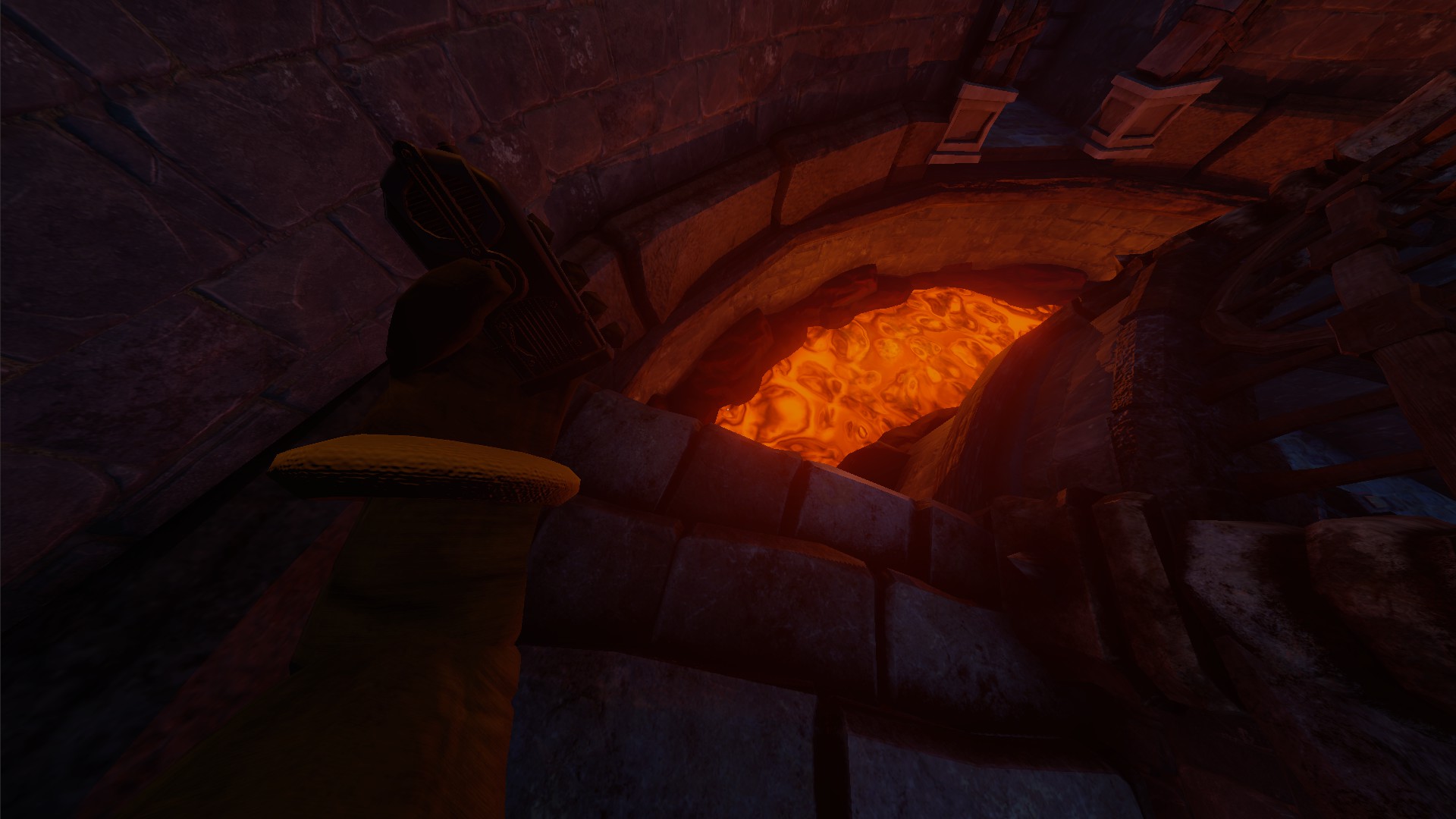 The first puzzle sets the tone and lends a hand with the sort of puzzles you’ll have to solve later. When you spawn in, person A is faced with a stone casket with three symbols etched into it, and person B is in a burial room. Person B has to find the correct symbols, tell person A what they are, and then person A highlights the right symbols and proceeds to the next room.