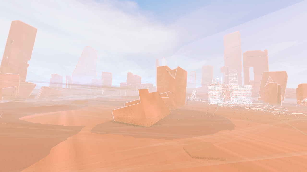 However, the second world I explored in 0°N 0°W told a completely different story, and the world after that another. One world, a colorful cityscape with eerie polygonal security drones and traffic sounds, seemed to tell a story of a dystopian future. Another, a small farmhouse surrounded by emptiness, told a story about leaving home.