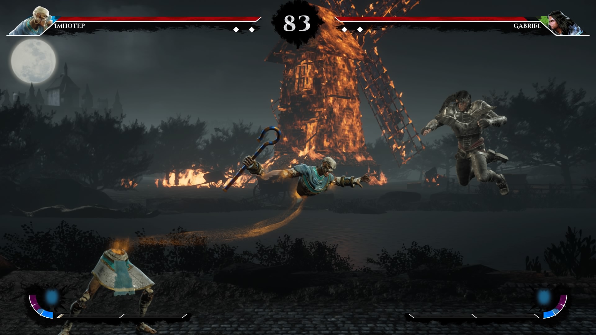 Omen of Sorrow is a 2D fighting game similar in mechanics to Mortal Kombat or Street Fighter. As such, some of its flaws can almost be excused as nostalgic evocations of the tropes of the genre: the poor writing; the over-the-top, caricature-like characters; the nonsensical story. Almost.