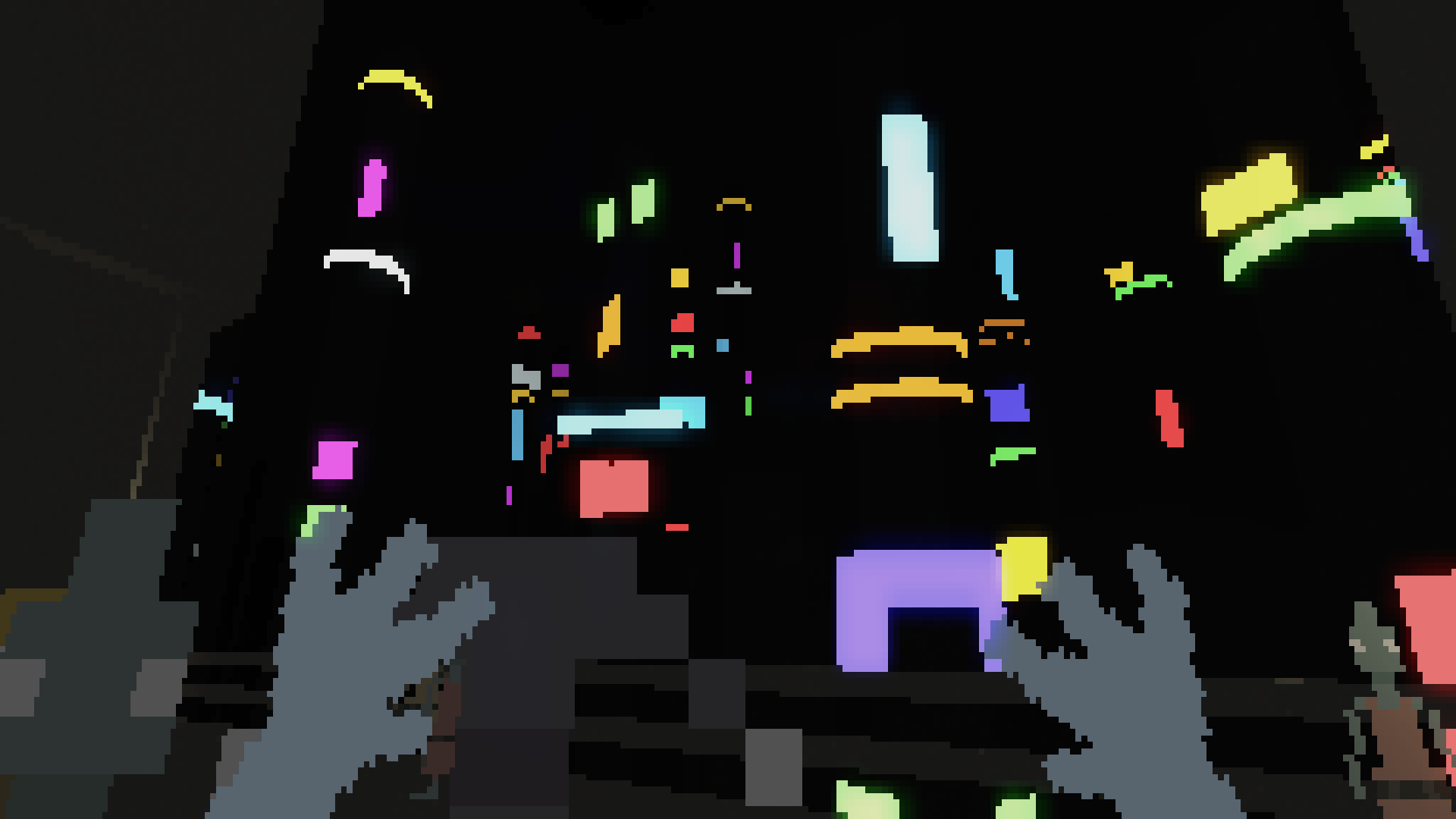 Many walking simulators have you strolling through a beautifully-rendered landscape, a quaint British village, or perhaps exploring someone’s home. Not so with Bernband. This quirky game by Tom van den Boogaart is an exploration of an alien city – and not a ‘realistic’ one, either. At a super-low res and level of fidelity with pixellated models and aliasing everywhere you look, Bernband is a stylistic oddity.