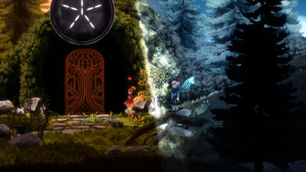 Fairytale-inspired games are nothing new and Degrees of Separation uses the standard template of that classic style to tell its own fable. This is the story of Ember and Rime, a young woman and man with a magical bond that grows stronger over the course of the game. Ember is a creature of the light and warmth, while Rime is from a cold blue arctic land.
