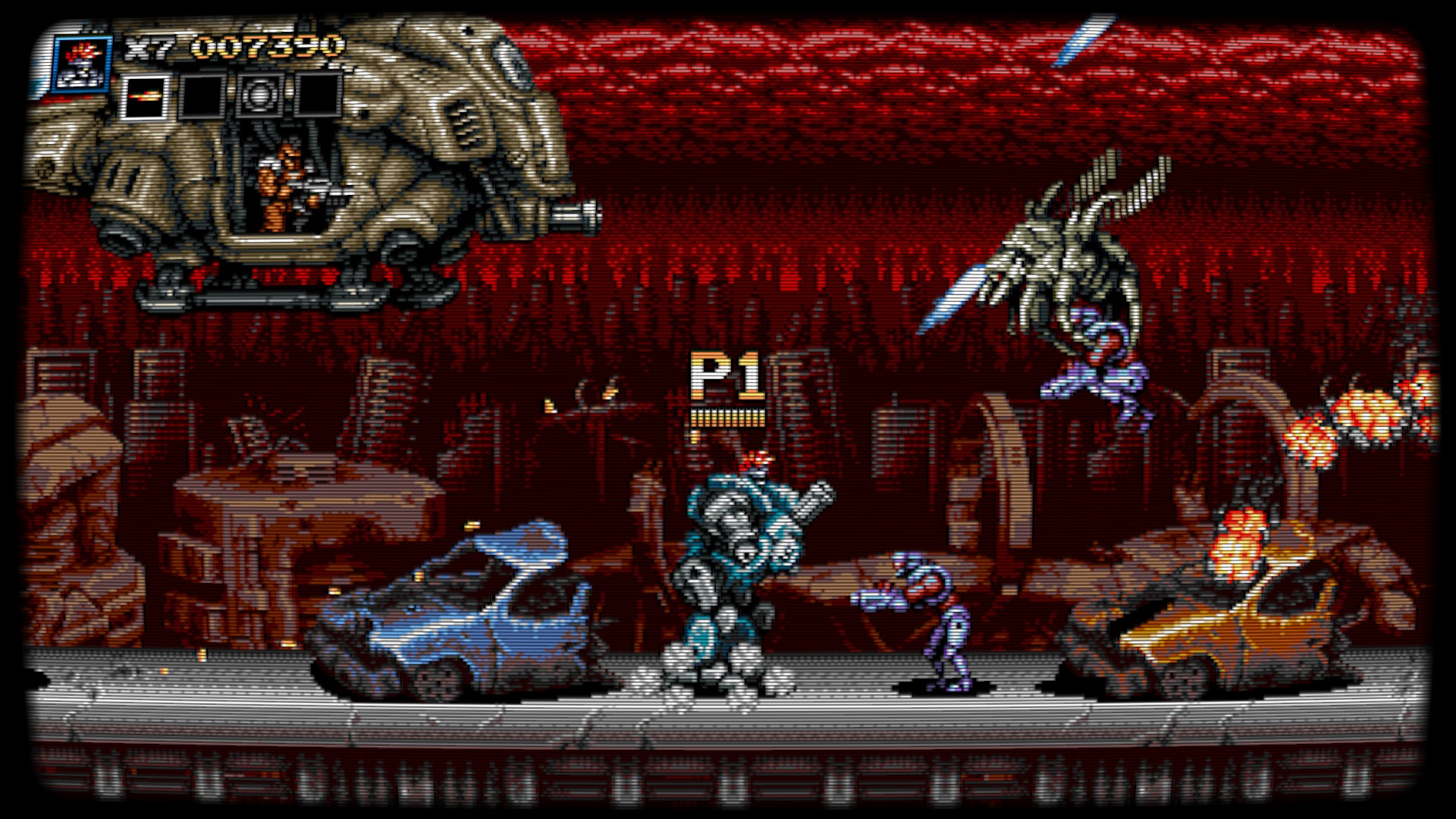 Where Oniken unabashedly called back to the NES Ninja Gaiden games and Odallus riffed on the Castlevania games from that era, Blazing Chrome channels Contra III: The Alien Wars, Contra: Hard Corps, and Metal Slug. With beautiful pixel art that capably replicates the grungy feel of those games and synthesized voice acting, the only things that give away Blazing Chrome as anything other than a Sega Genesis or Mega Drive game are its widescreen presentation and the fact that it’s 100 megabytes.