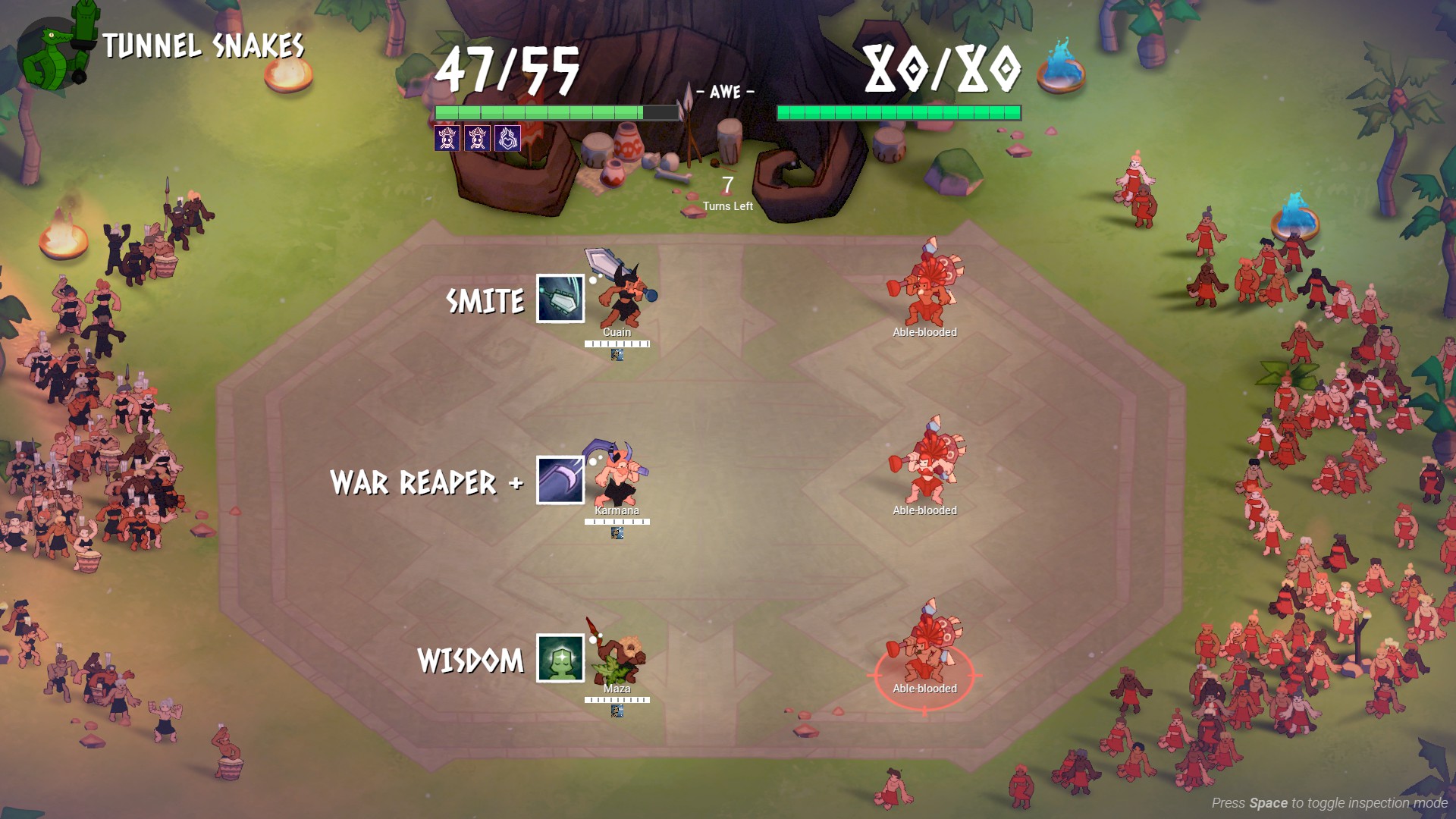 Past versions of the game had small forms of interaction with battles, known as Sacraments. Godhood’s current state no longer has that interaction and now has the game take full control of your disciples right after you choose them for battle. Godhood developer, Rick Sorgdrager recently responded to a forum user saying it’s more about being a presence as a God. A God in Godhood is along for the ride, rather than controlling how every encounter unravels.