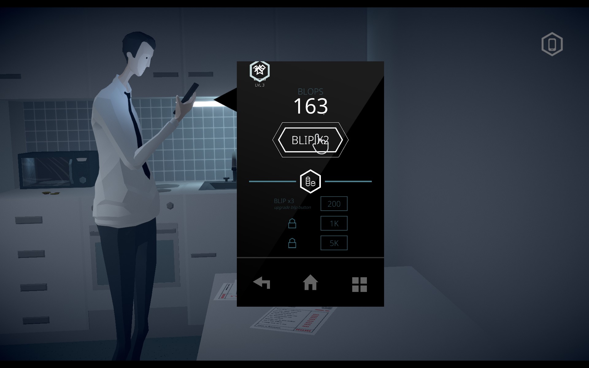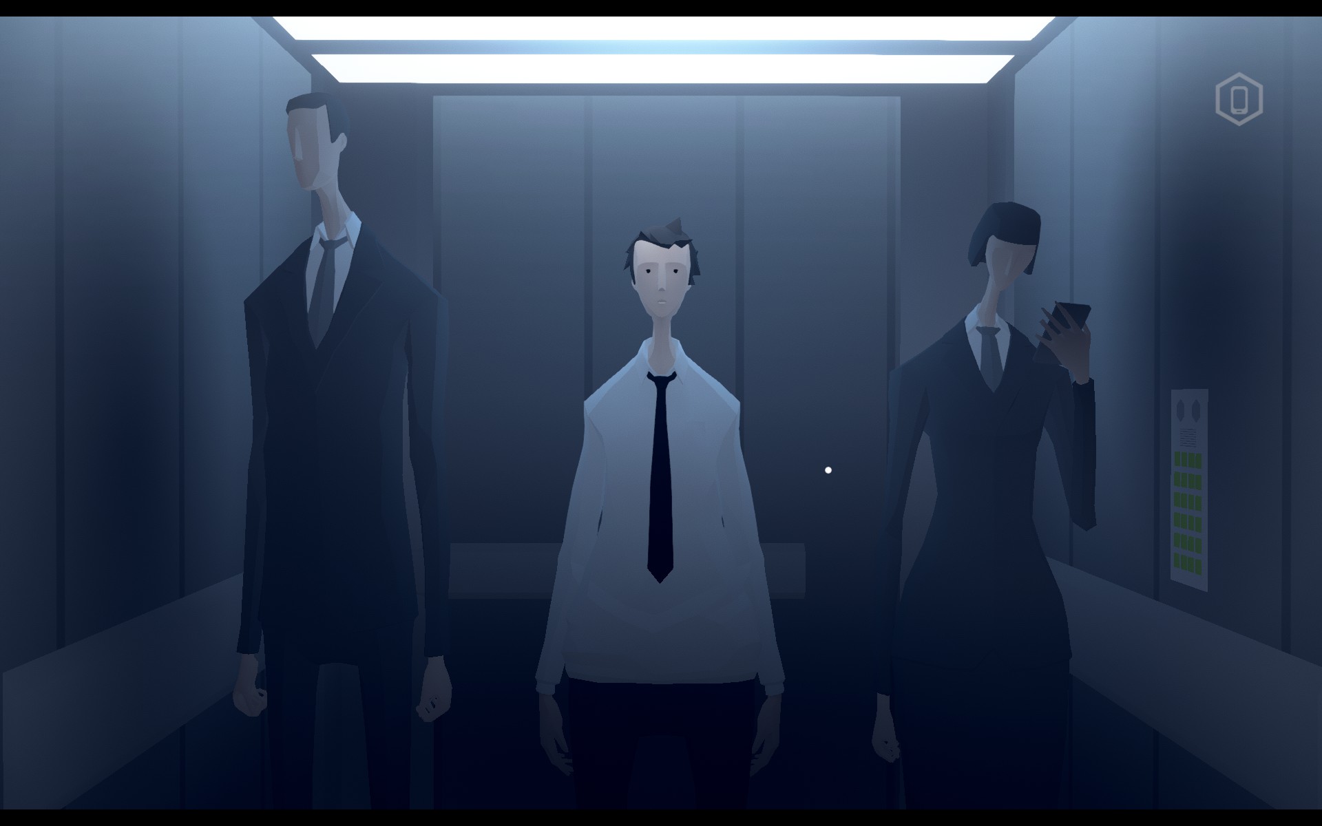 Mosaic is not quite a walking sim, as it involves some gorgeous perspective-twisting puzzles, and an array of mini-games. Your phone will be your constant companion, filling your time with mindless clicker games, or watching yourself be turned down by everyone you ‘like’ on a dating app. You can check messages from friends, hurt that you never respond. You can check your bank as it sinks into the minus figures.