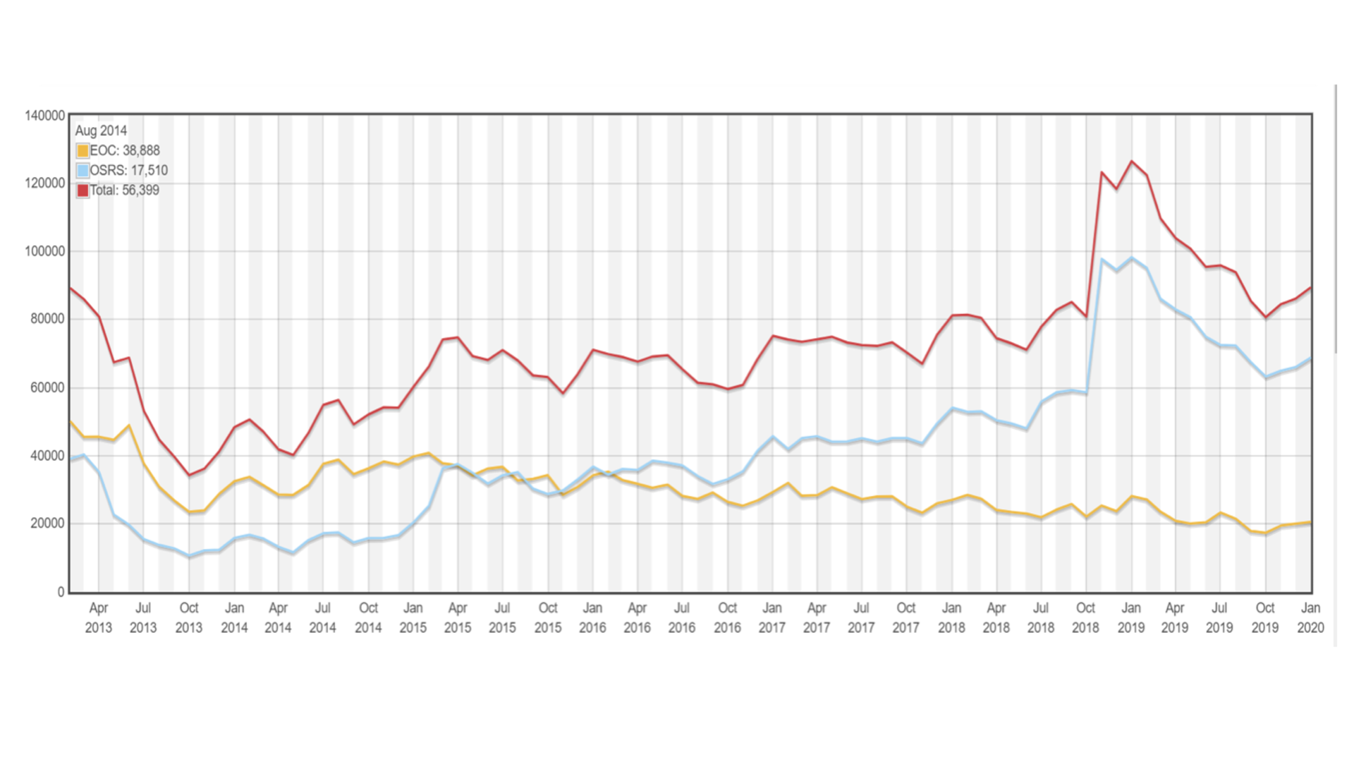 This graph from MisplacedItems shows the general uptick in OSRS players (the blue) compared with Runescape 3 players (the yellow) who are on the decline through multiple plateaus. The sharp rise in OSRS players was due in part to the mobile game’s release, but the Runescape 3 mobile early access release clearly had no impact on the number of players subscribing to its WoW-ified stylings.