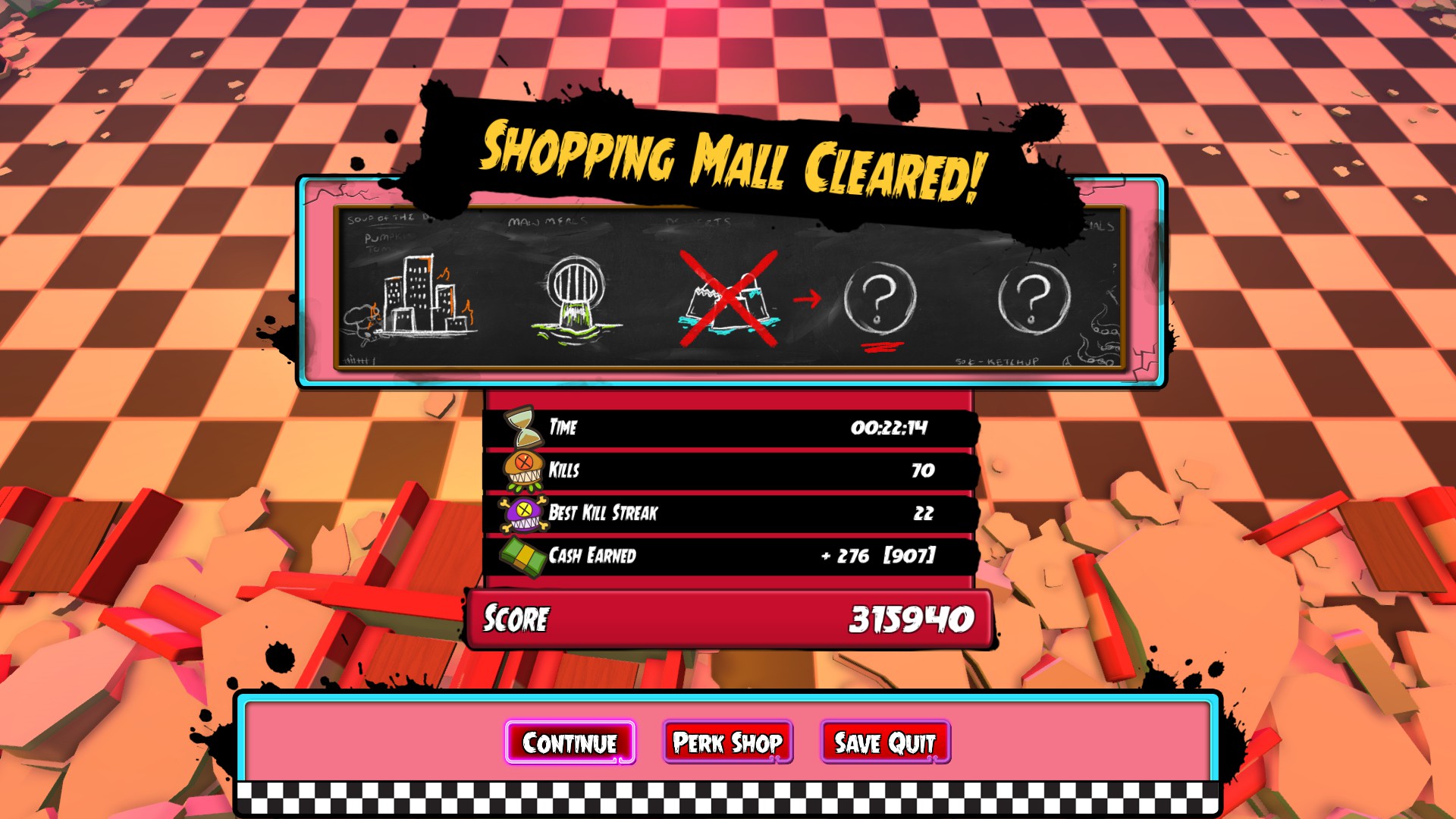 Nothing is truly seamless in Nom Nom Apocalypse. Not being able to use the D-Pad on a controller in the menu is frustrating. Swapping your weapon for another yeets it precariously away. The music is repetitive. The sound design lacks a real punch. What this all combines to deliver is a game where you can see each individual part operating independently.