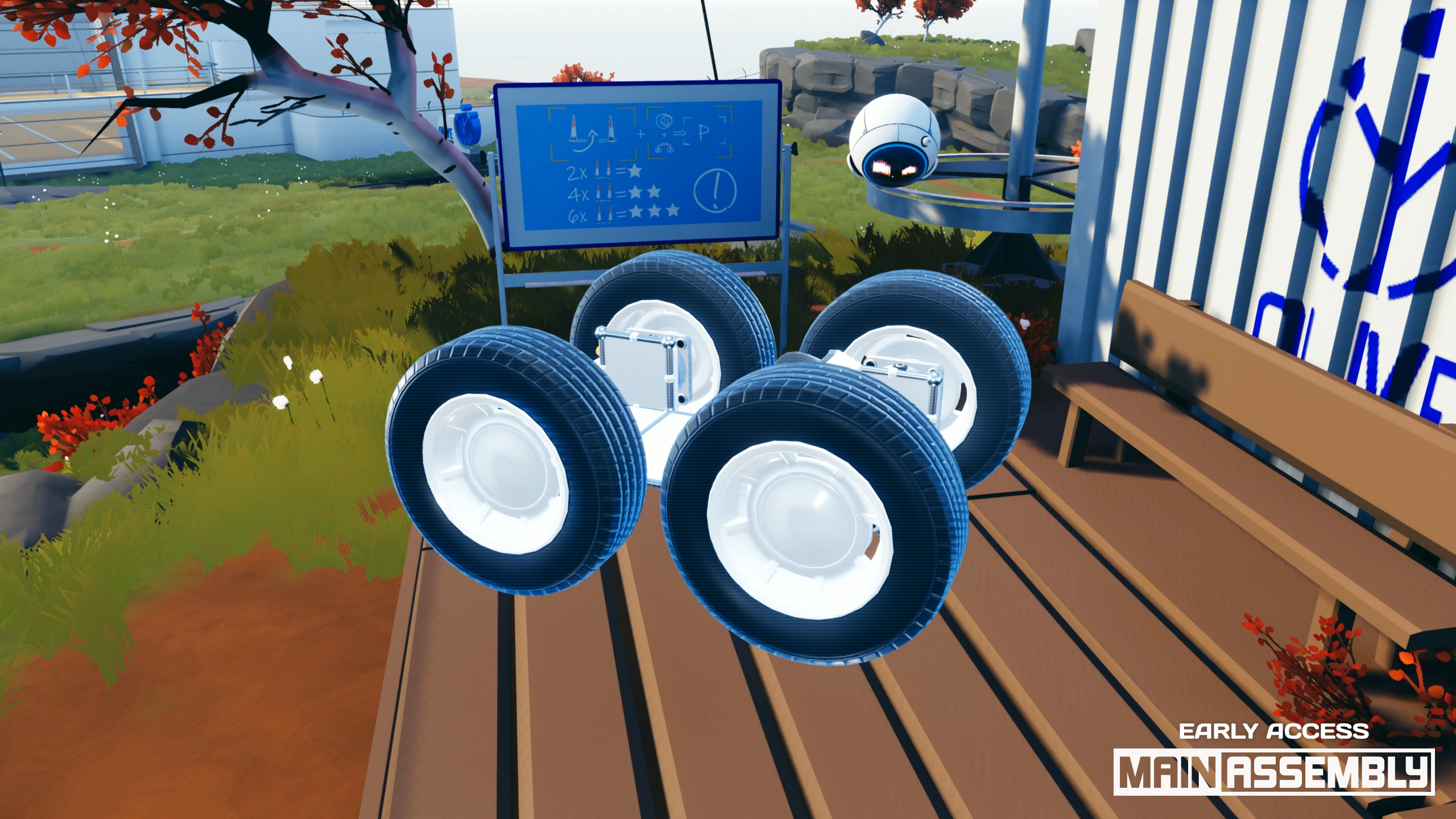 After tutorial levels introducing you to how cars control and are spawned, you’re taught about some of the more complex aspects of Main Assembly. The chassis of each vehicle is entirely customizable and so too is the programming. You are given cars with issues and are told to fix them and while initially this just involves adding wheels or a chair, it later comes to include customizing the chassis and much much more. Making a car that’s 7 feet tall entitled “Long Boi” or a tiny tank with eight huge wheels really expresses how far this system can go. The chassis can simply be pulled to fit parameters, and new angles and joints can be added to increase the options available.